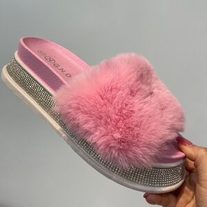 PLATFORM WITH STONE FUR SLIPPERS ds29