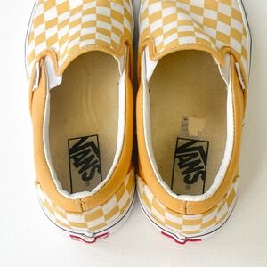 Keywords: Vans, Slip On, Checkerboard, Yellow, White, Sneakers, Shoes, Womens, Casual Shoes, Skate Shoes, Comfortable, Classic, Low Top, Womens Size 8.5