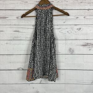 Savanna Jane Tank Top Womens Small Black Embroidered Floral Halter Southwestern