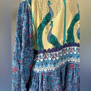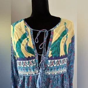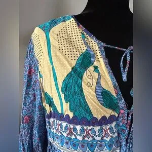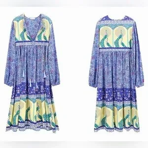 Step out in style with this elegant blue and green dress. Perfect for any occasion, this dress combines comfort and fashion effortlessly.
