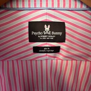 Brand new with tags Psycho Bunny Men’s Striped Dress Shirt, pink stripe, size 16