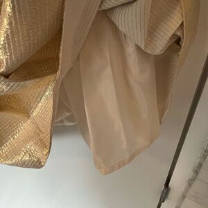 Shoshanna Women’s sleeves dress with pockets, pleats, excellent condition, only worn ones, fully lined, size 8, gold stripes on cream background, beautiful for any special occasion