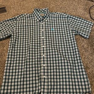 Cinch Men's Green Checkered Short Sleeve Button up shirt