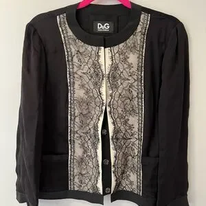 Dolce & Gabbana lace blouse/jacket. snap front closures, silk, black and off white color, excellent condition, only worn ones, european size 44, made in italy