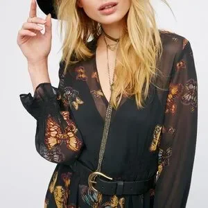 Free People Butterfly Skies Black Sheer Handkerchief Asymmetrical Smock Dress XS