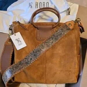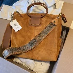 NEW WITH TAG Hobo Bag Sheila Large Sachel In Tan Suede Leather With Gutar Strap