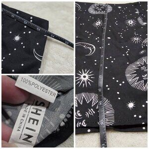 🆑 Shein Womens Mini Skirt Black White Celestial Sun Moon Star Print Polyester M