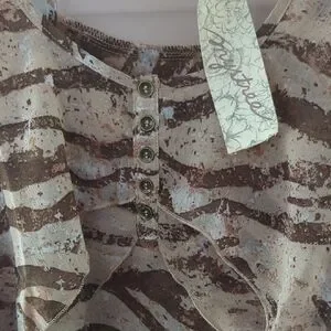 This relaxed-fit Tank Top by Mystree features a striking abstract animal print in brown and cream. The sleeveless design and ruffled details add a touch of elegance, making it perfect for both casual and dressy occasions. Crafted from a lightweight fabric, it offers a comfortable and breezy feel.