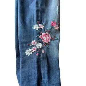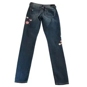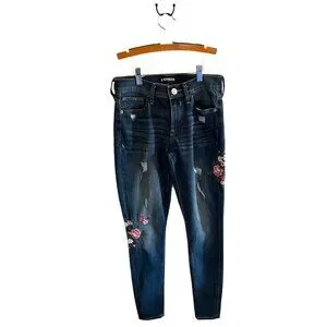 Express Womens Distressed Floral Embroidered Skinny Legging Jeans Size 0 Cotton