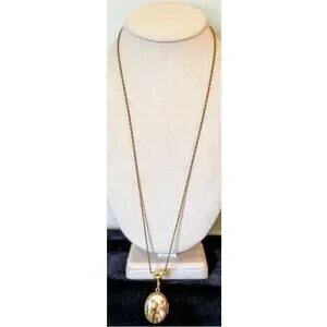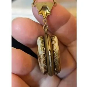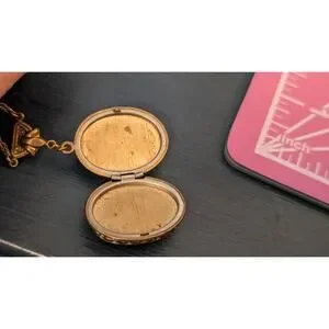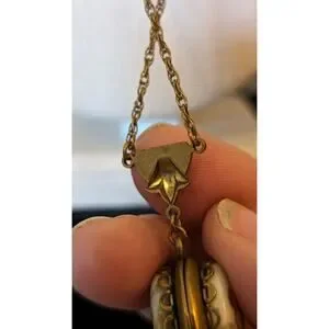 Vintage to Antique Victorian Scene Two Women Ceramic Locket. I believe this is 10k gold filled. The clasp works great. Barrel clasp. Intricate lacy chain. Chain measures 26" long. Beautiful antique/vintage condition.