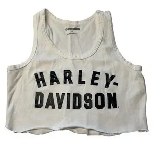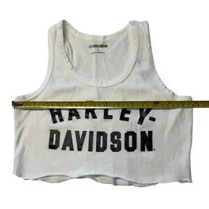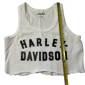 Harley Davidson Size XS Cuttoff Crop Tank Top White Black Moto Biker Grunge Alt