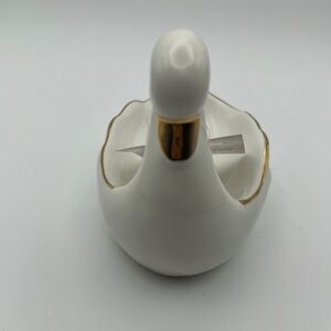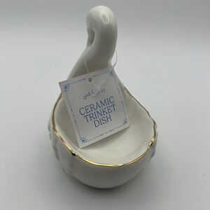 Charming ceramic swan-shaped trinket dish with gold accents. Perfect for jewelry or small items.