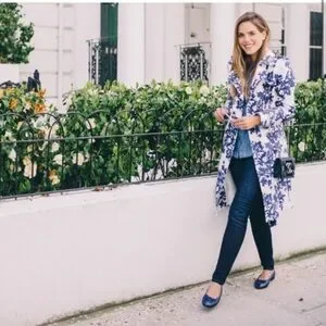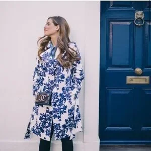 ♥️ Hobbs London Analia Floral Print Blue and White Trench Coat