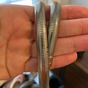 Vintage 1970s crossover metal belt, approx 31”, unique clasp and look