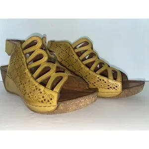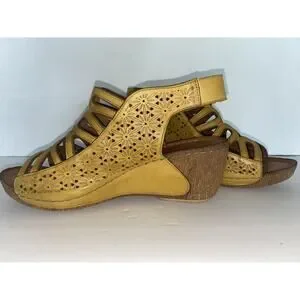 $120 SPRING STEP US Women’s Sz 9 / EU 40 Yellow Leather Inocencia Wedge Sandals