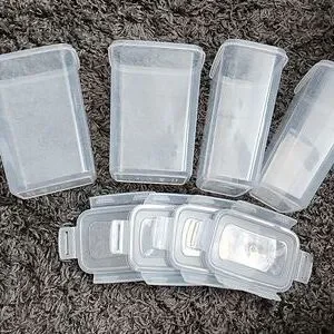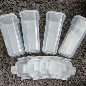 Set of clear plastic storage containers with lids. Perfect for organizing your kitchen or pantry.