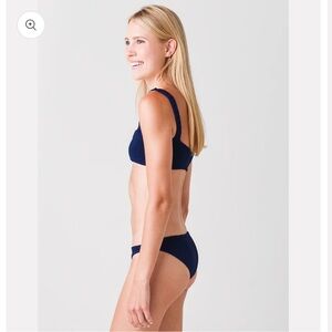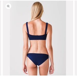 Stylish navy blue bikini set with textured design. Perfect for beach days.