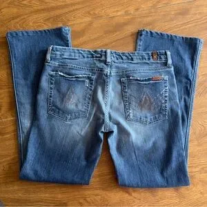 7 For All mankind Womens Med Wash Cotton Blend “A” Pocket Stretch Bootcut Denim Jeans size 32