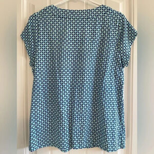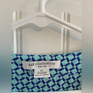 Liz Claiborne Women’s Petite Large Geometric Pattern Short Sleeve Blouse
