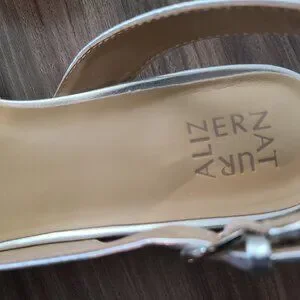 Naturalizer silver pointed toe sling back 1.5 inch heels.
