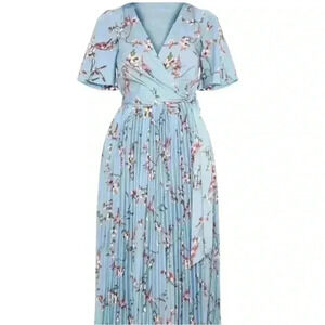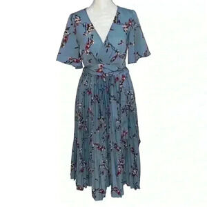 PrettyLittleThing Dusty Blue Floral Pleated Midi Dress-NWOT, Size 4