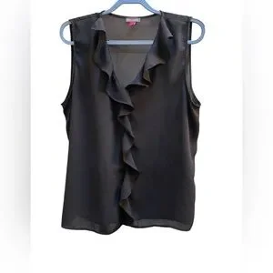Vince Camuto Elegant black sleeveless top with ruffle detailing. Perfect for any occasion. Size XL