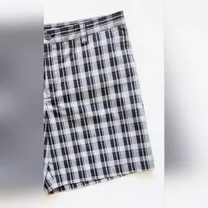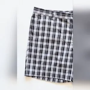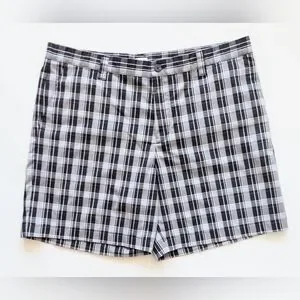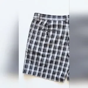 Adidas Golf Shorts Mens Size 38 Black White Plaid