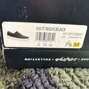 Comfortable slip-on design. Textured black upper. White sole for contrast.