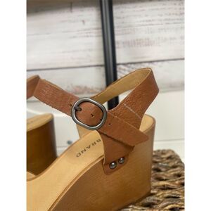 Lucky Brand Leather Studded Wedge Sandals - Size 7.5