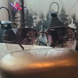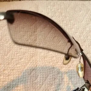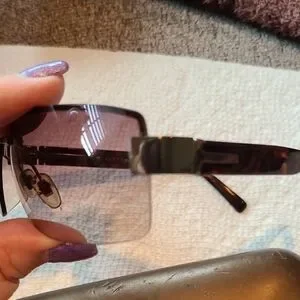 Good preloved condition. If keeping, I would change the nosepads to freshen them up. I don't believe the lenses have any scratches. Bottom lens are rimless. Lenses are gradient. Very nice and simplistic style.