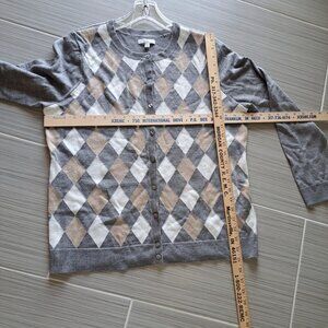 Croft And Barrow Women's Large Argyle Cardigan Sweater Preppy Career Clueless