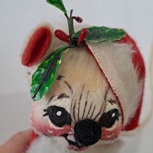Vintage Annalee Made in USA Doll mobilitee 1969 holly muff Christmas hat Santa Mouse Mrs Clause Mouse 6" See pictures for description and condition Collectible Holiday Retro