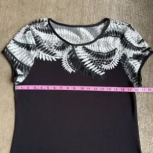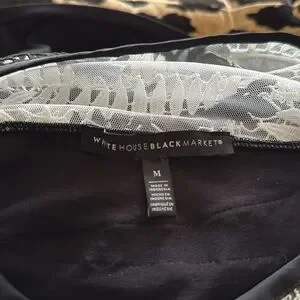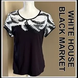 WHITE HOUSE BLACK MARKET-Black/White Lace Detail Top-Cap Sleeves-Knit Body Sz M
