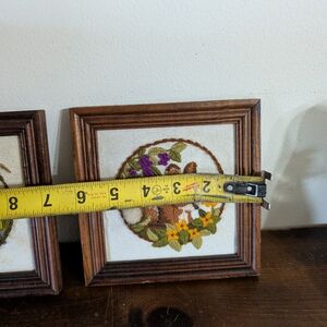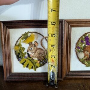 Vintage Crewel Pair Embroidered Woodland Animal Wall Art Set Rabbit Mouse