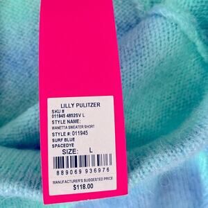 NWT $118 LILLY PULITZER Wanetta Sweater Shorts surf blue L