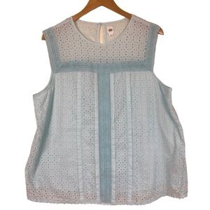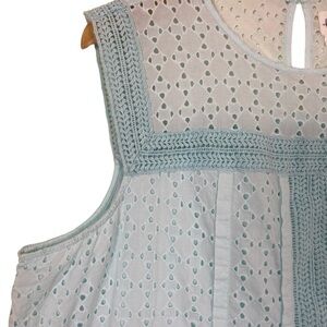 GAP Cottagecore Boho Crochet Eyelet Sleeveless Top Light Blue Lined Cotton Sz XL