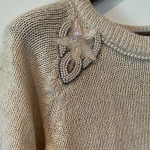 Vintage Extra Energy Beaded Collar Sequin Star Detail 3/4 Sleeve Sweater