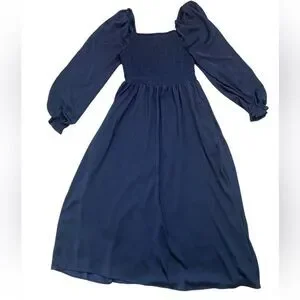 GAP Navy Smocked Bust Square Neck Long Sleeve Midi Dress