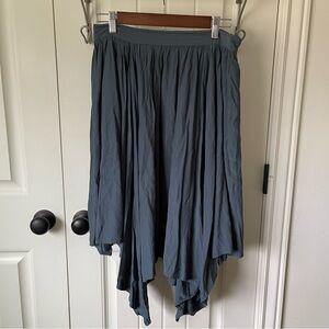 This blue gray midi skirt from DownEast features an asymmetrical hemline and pleated design, perfect to add texture and flow to an outfit. Its elastic waistband and pockets ensure comfort and style.