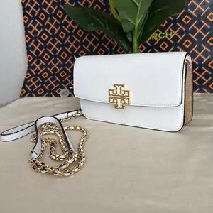 NWT ,Tory Burch Britten soft chain wallet W Wristlet White and Gold Women's Bag