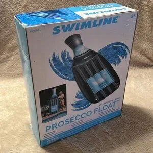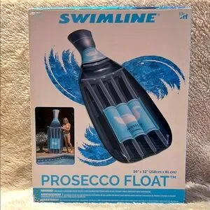 Cheers To Fun Floating! Add some bubbly to your pool, lake, river or beach party. Prosecco Bottle float is designed with pretty metallic accents and a built-in headrest. Dimensions: 86” x 32” (218 cm x 81 cm). Material: Durable, heavy-duty PVC vinyl. Design: Shaped like a prosecco bottle with a cork headrest and ribbed base for comfort. Inflation: Easily inflatable with an air pump (not included) and deflatable for storage. Weight Capacity: Up to 250 pounds. Additional features: Clear top construction for cooling and a buoyant pillow headrest. Lightweight for portability this raft is made to accommodate 1 person that is 13 years or older. Color: Gray-Silver and Blue. ⚠️ Warning: This is NOT a lifesaving device. Do NOT leave children unattended while in use. Use ONLY under competent adult supervision. Box is sealed (minor/superficial marks due to storage-shipment). Should you have any questions, please do not hesitate to ask. Thank you for visiting my closet. 💐