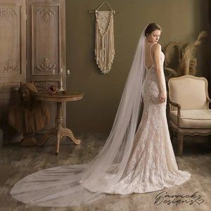 Baroque Style Cathedral Bridal Wedding Veil With Raw Edge and Comb