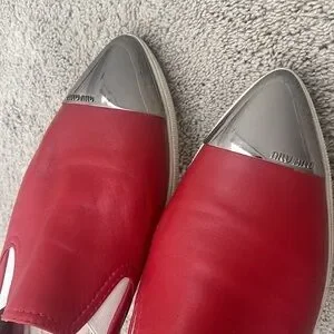 Miu Miu Pointed Metal Cap Toe Skate Red Leather Sneakers Size 10 (40)