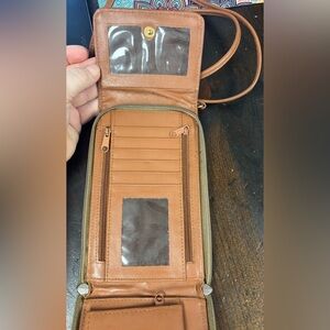 Stylish and compact, the crossbody bag in olive and tan is perfect for everyday use. Its sleek design and versatile colors make it a must-have accessory.