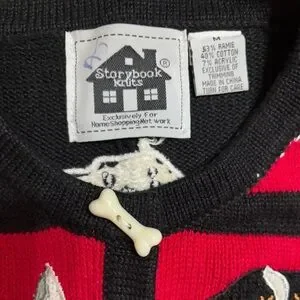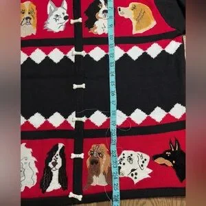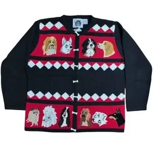 Perfect sweater for a Pooch lover!!! Bone button details. In Excellent Pre Loved Condition Yorkie, Doberman, Poodle, Bermise, Dalmatianon, Hound SO MANY PUPSSSSS!!