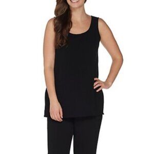 Linea by Louis Dell"Olio Top 1X Black Tunic Gauze Sleeveless Side-Slits Pockets