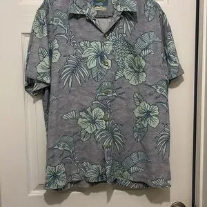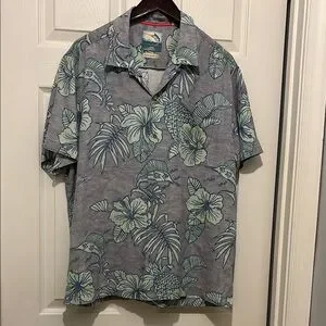 Tommy Bahama silk Men's Tropical Print Shirt - Gray and Green