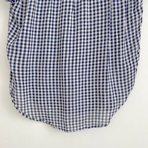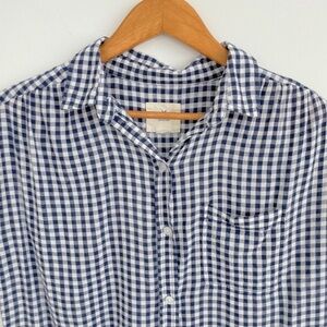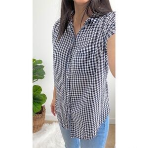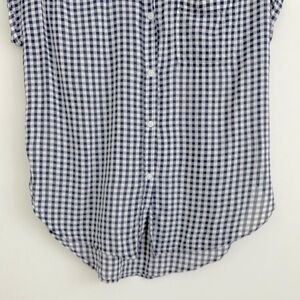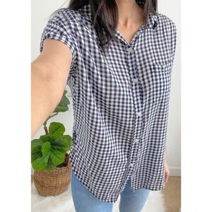 American Eagle Blue & White Gingham Checkered Short Sleeves Button Down Shirt. Lightweight. Button down closure. Collared. Blue & white. Checkered. High Low. Front Pocket. Cotton blend.