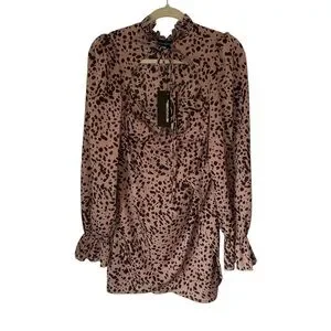 The PrettyLittleThing Dusty Pink Dalmatian Tie Neck Puff Sleeve Wrap Skirt Bodycon Dress is a bold and feminine statement piece. Crafted in a soft dusty pink fabric with a chic dalmatian print, this dress features a flattering bodycon fit that accentuates your curves. The puff sleeves add a touch of vintage charm, while the wrap skirt detail creates a playful, flirty silhouette. The tie neck closure adds a sophisticated touch, balancing the edgy design with elegance. Perfect for special occasions or a night out, this dress is both stylish and striking.