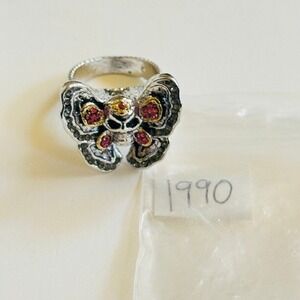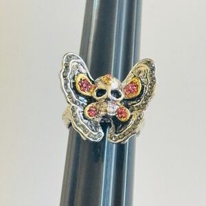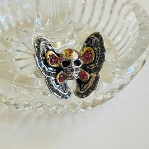 Evbea Gothic Skull Cocktail Ring Butterfly Biker Statement Chunky Silver pink